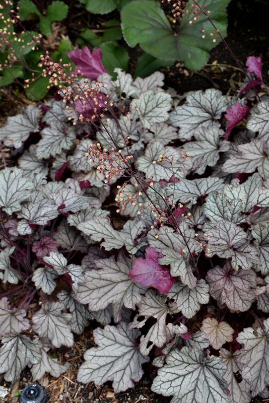 Spellbound Coral Bells features dainty spikes of creamy white bell-shaped flowers rising above the foliage from late spring to early summer. Its attractive lobed leaves emerge purple in spring, turning silver in color with distinctive deep purple veins and tinges of red the rest of the year.